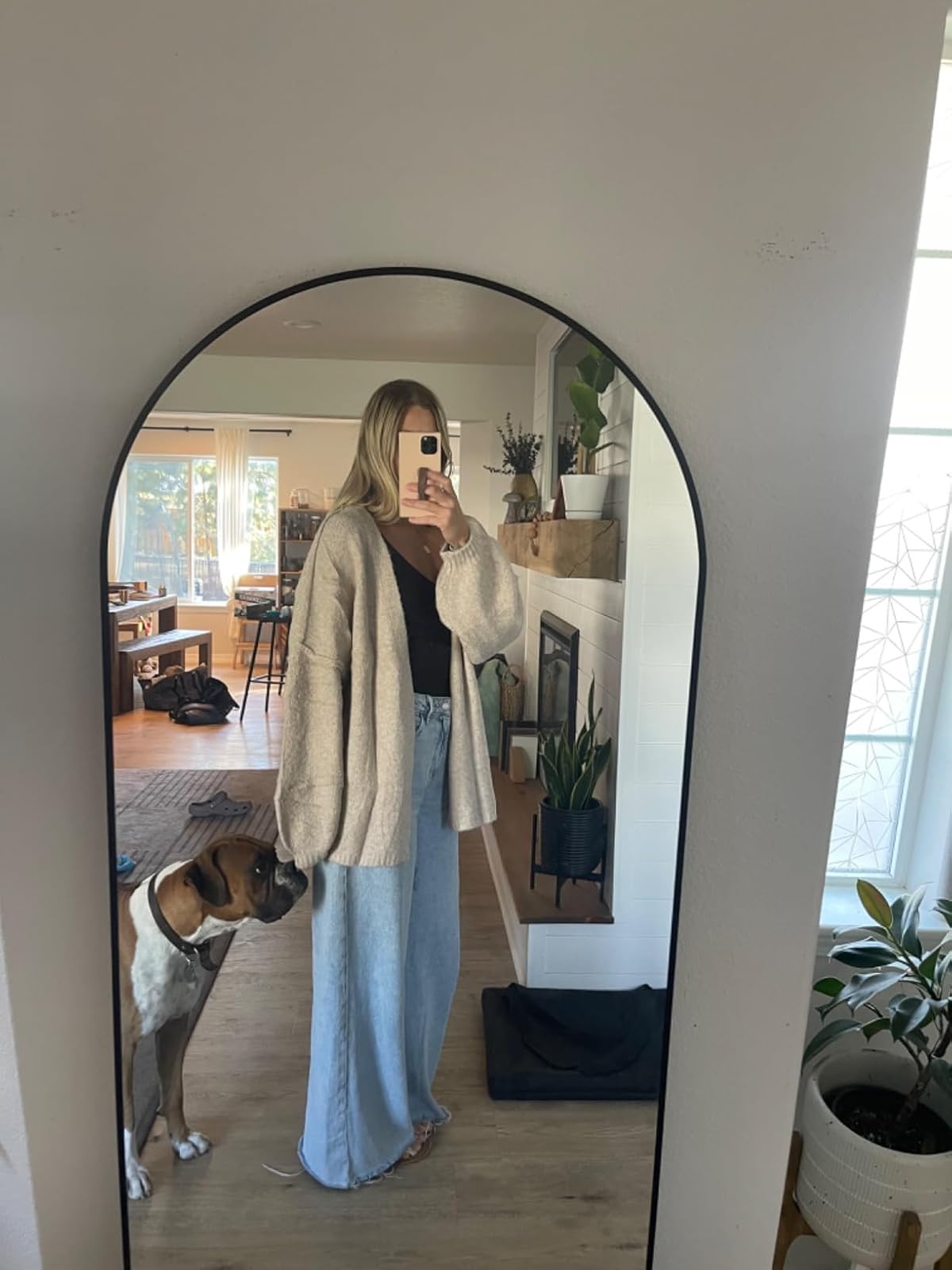 Obsessed literally my favorite sweater. Thick material so comfy. Boho vibes, wish I got a size bigger for a more oversized look but it is a little oversized to begin with.